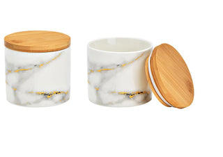 Comodissimo porta zucchero doppio, dotato di una divisione interna e due cucchiaini con tappo.